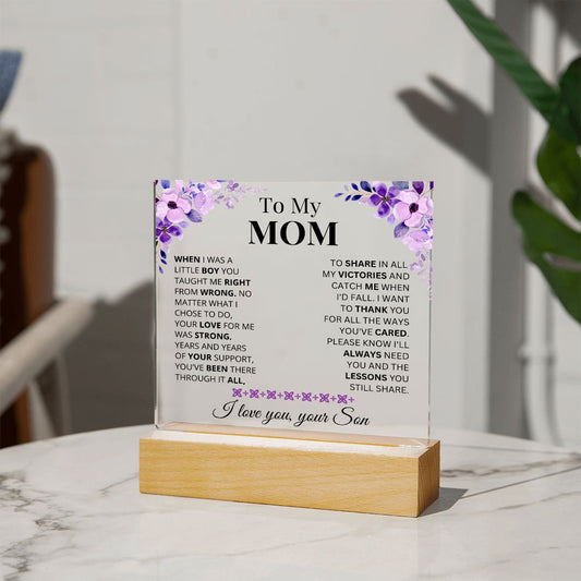 To My Mom - Always - Square Acrylic Plaque with Lights