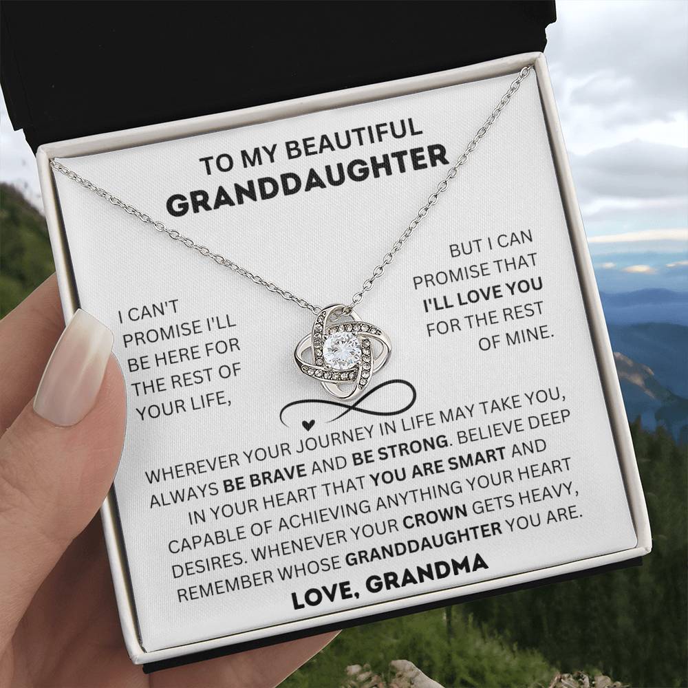 I can't promise I'll be here for the rest of your life, but I can promise that I'll love you for the rest of mine. Wherever your journey in life may take you, always be brave and be strong. Believe deep in your heart that you are smart and capable of achieving anything your heart desires. Whenever your crown gets heavy, remember whose Granddaughter you are.