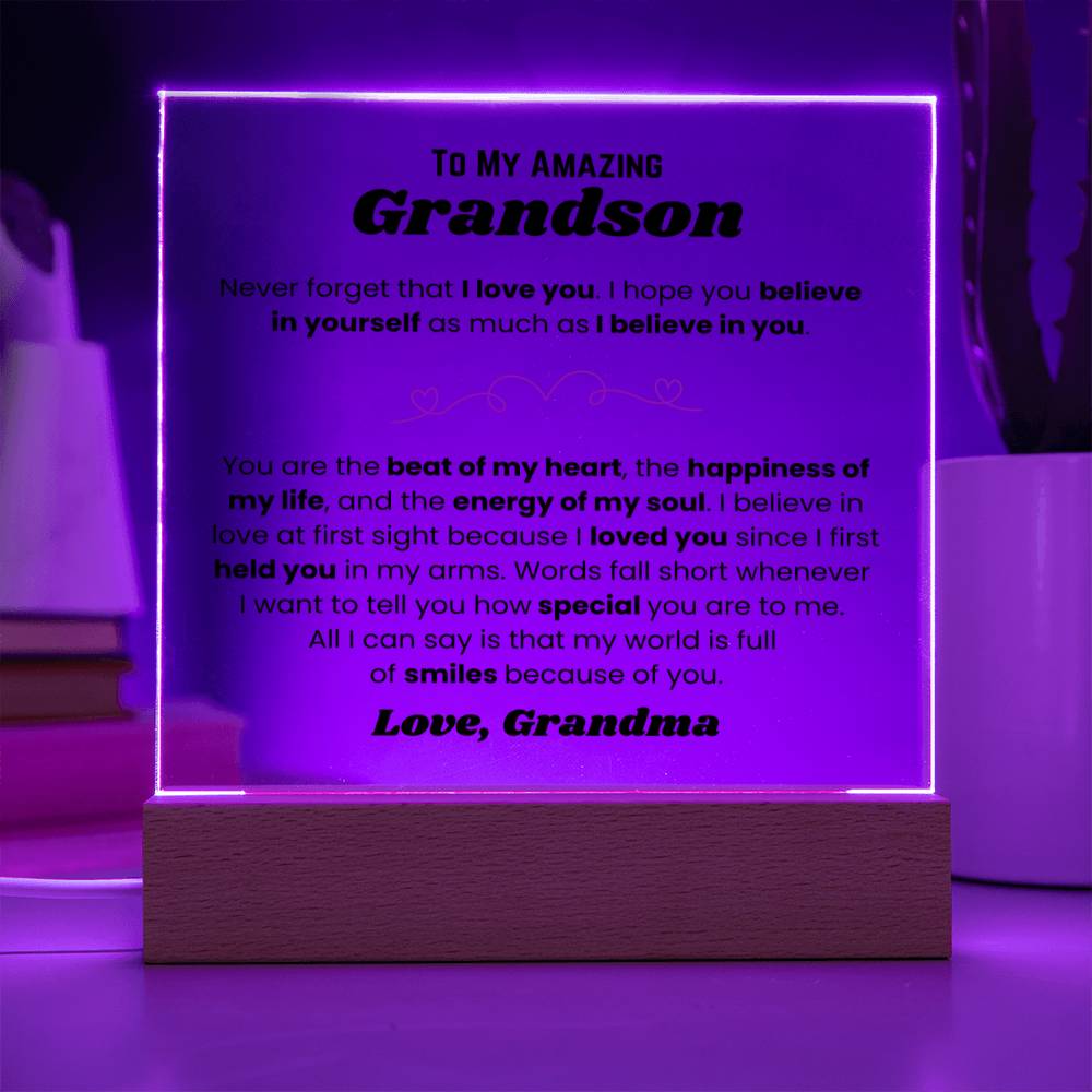 To My Amazing Grandson - My World - Square Acrylic Plaque with Lights